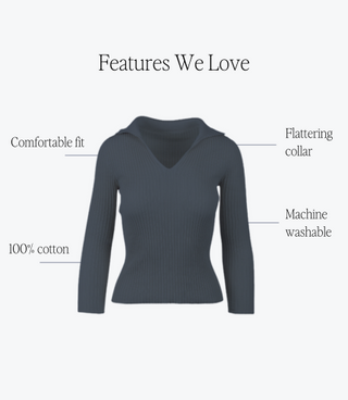 The Paula is a stylish ribbed polo with a v-neck opening. It’s flattering, comfortable, and timeless. This top looks great with jeans as well as tucked into a high-waisted skirt or pants. For a work style, pair it under a blazer, and you are all set.