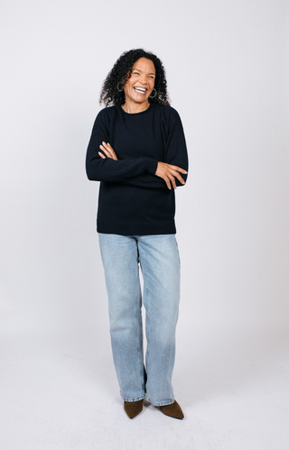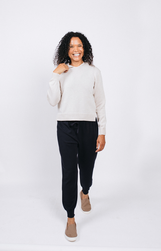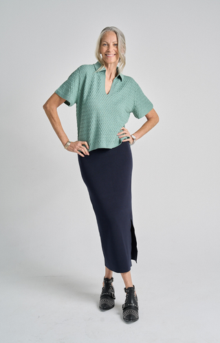 Sleek neckline and elegant knit, featuring intricate pointelle detailing that sets it apart from the ordinary.