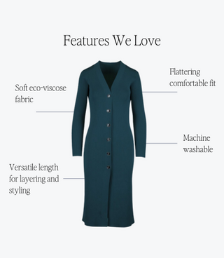 The Kristin long sweater can be your go-to piece for year-round style. Whether you're dressing up or down, this versatile sweater will be a wardrobe staple. For an effortlessly chic and flattering monochromatic look, pair it with our Jordan Dress. The combination is sure to turn heads and make a lasting impression.